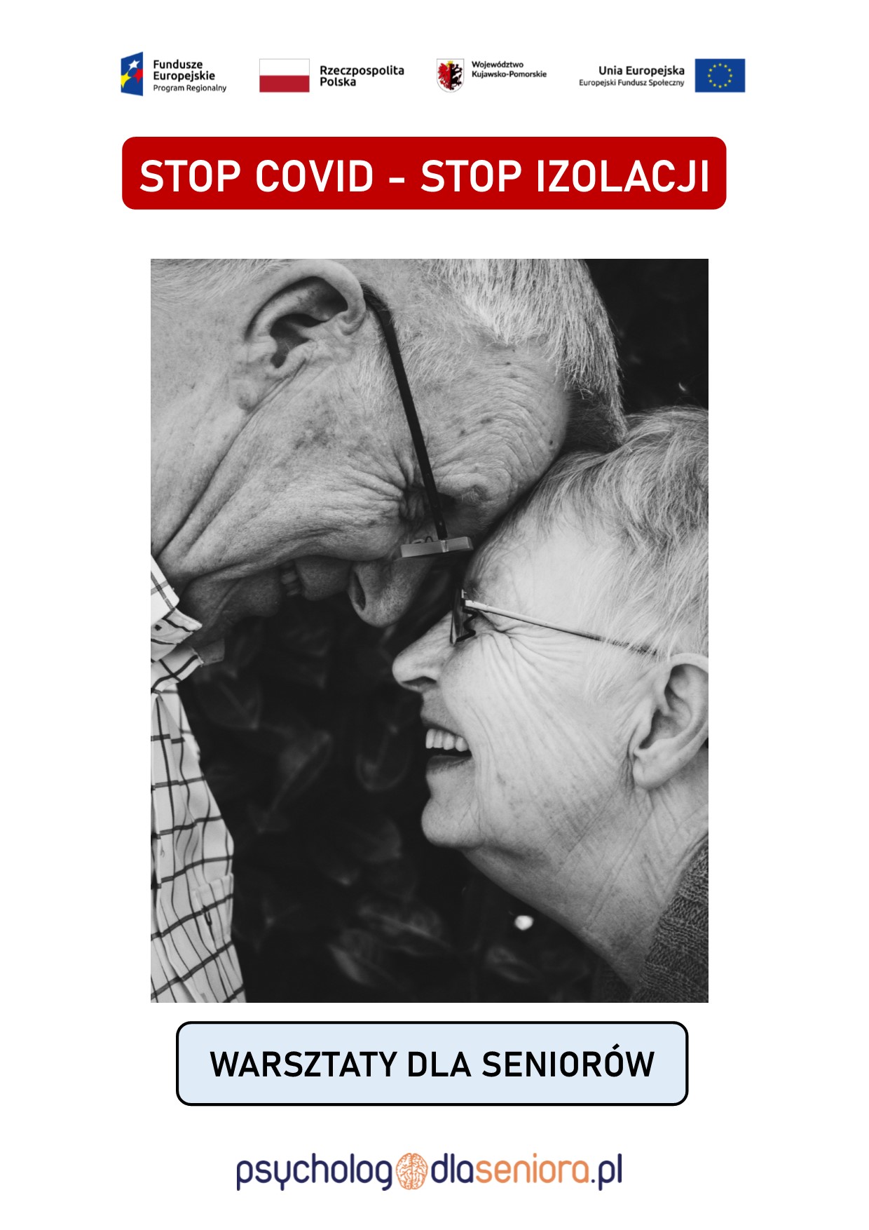Warsztaty realizowane w ramach projektu partnerskiego pn. „Pogodna jesień życia na Kujawach i Pomorzu – projekt rozwoju pomocy środowiskowej dla seniorów”, współfinansowanego z Europejskiego Funduszu Społecznego w ramach Osi Priorytetowej 9. Solidarne społeczeństwo Działanie 9.3 Rozwój usług zdrowotnych i społecznych Poddziałanie 9.3.2 Rozwój usług społecznych Regionalnego Programu Operacyjnego Województwa Kujawsko-Pomorskiego na lata 2014–2020.